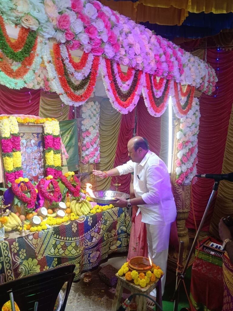 సనాతన ధర్మ పరిరక్షకుడు బోయకొండ మాజీ చైర్మన్ పురాతన దేవాలయాల పునర్నిర్మాణదాత ఎస్.కె వెంకటరమణారెడ్డి తన సొంత గ్రామంలో సొంత నిధులతో నిర్మించిన సీతారాముల ఆలయంలో ఆదివారం శ్రీరామనవమి ఉత్సవాలను ఘనంగా నిర్వహించారు ఈ క్రమంలో ఉదయాన్నే రామకోటి కార్యక్రమాన్ని ప్రారంభించారు ప్రారంభ సమయంలో ఆయన సీతారామ చిత్రపటానికి హారతి ఇచ్చారు ఈ హారతిలో కర్పూర దీపం వినాయకుని రూపాన్ని కలిగి ఎస్కేఆర్ ను ఆశీర్వచనం చేసినట్లుగా ఉంది గుర్తించిన ఆయన తో పాటు స్థానికులు సీతారాములకు విశేష పూజలు నిర్వహించారు
