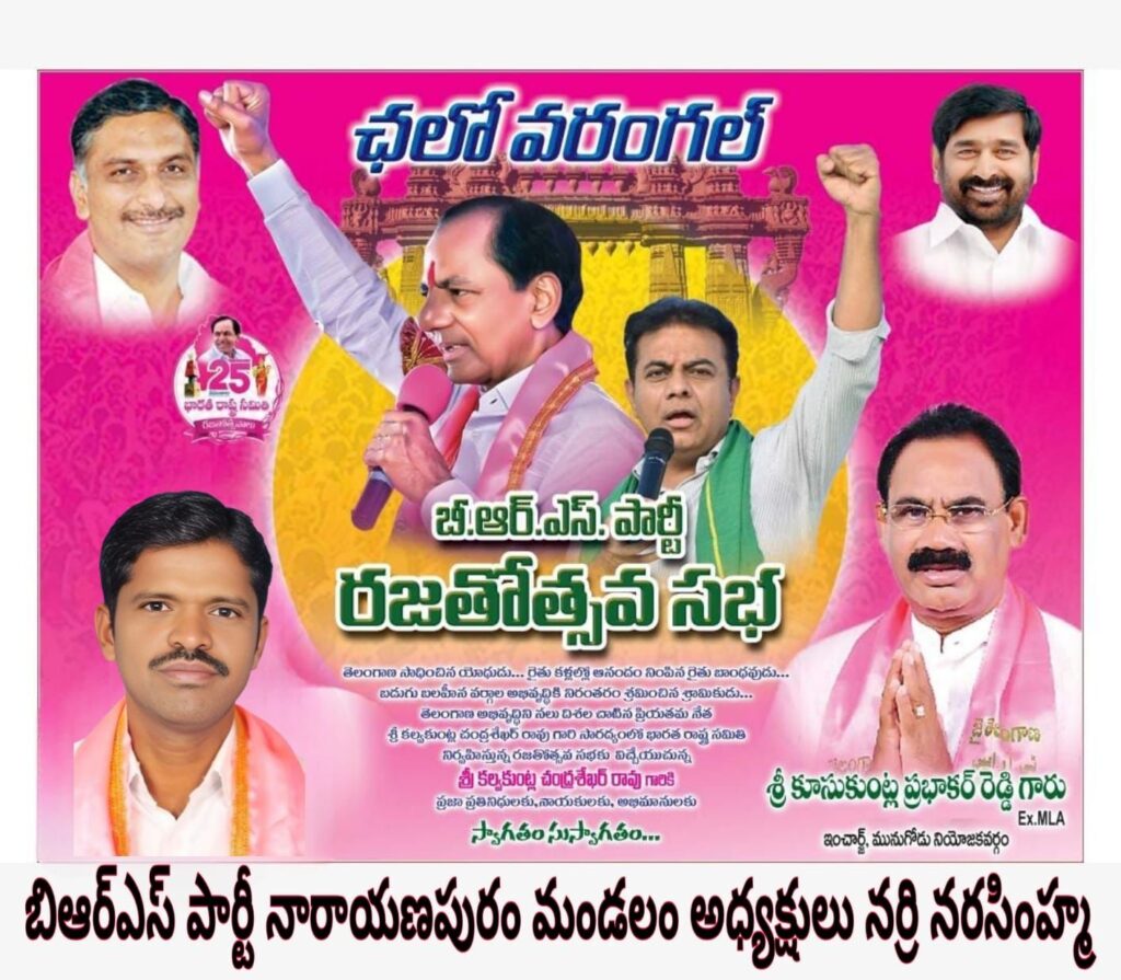 బిఆర్ఎస్ పార్టీ భారీ రజతోత్సవ సభ విజయవంతం చేసినందుకు నారాయణపురం బిఆర్ఎస్ పార్టీ శ్రేనులకు,గ్రామ శాఖ అధ్యక్షులకు,మాజీ ప్రజాప్రతినిధులకు,కార్యకర్తలకు,అభిమానులకు,నాయకులకు,ప్రతి ఒక్కరికి పేరుపేరునా కృతజ్ఞతలు తెలియజేశారు బిఆర్ఎస్ పార్టీ మండల అధ్యక్షులు నర్రి నరసింహ్మ.ఈ కార్యక్రమంలో పార్టీ కార్యకర్తలు, తదితరులు,పాల్గొన్నారు.