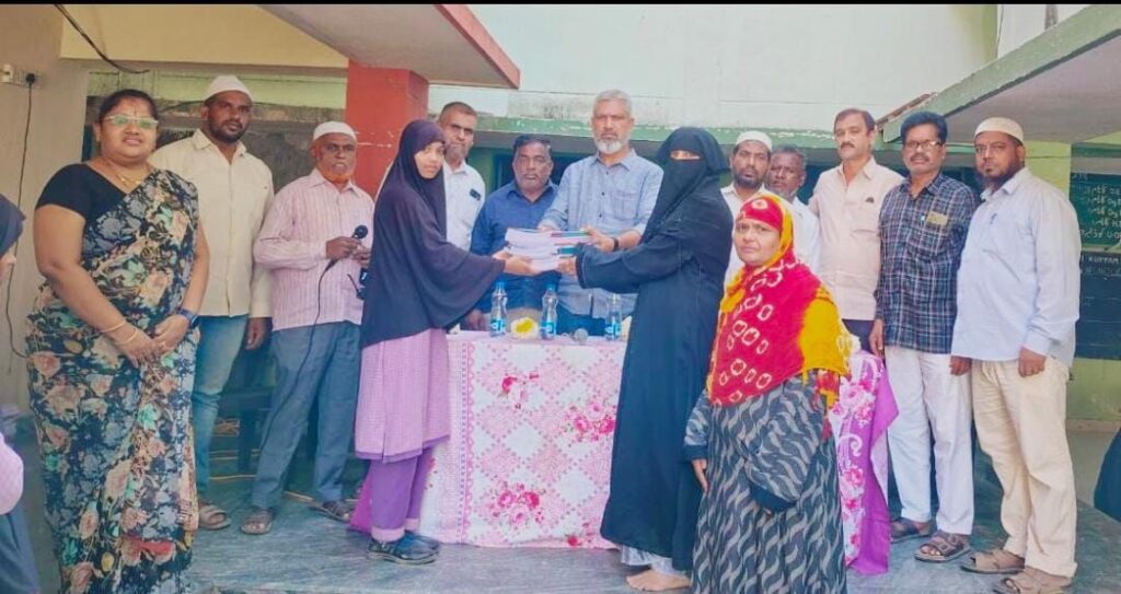 చిత్తూరు జిల్లా, కుప్పం నియోజకవర్గం కొత్తపేట మండలం గరుడ న్యూస్ (ప్రతినిధి); ఆర్. మంజునాథ్: సర్వేపల్లి రాధాకృష్ణన్ విద్యార్థి మిత్ర కిట్లలో భాగంగా విద్యార్థుల నోట్ బుక్స్ మరియు టెక్స్ట్ బుక్స్ లను అట్టహాసంగా ZPHS రాబర్ట్సన్ పేట ఉర్దూ నందు కుప్పం మైనార్టీ అధ్యక్షుడు జాకీర్ అహ్మద్ గారు, పాఠశాల చైర్మెన్ అల్లాబకష్ గారు, వైస్ చైర్మన్ అస్మత్ గారు, కో ఆప్షన్ మెంబర్లు ఖాసీం గారు, జాలు గారు, షామీర్ గారు, హెచ్ ఎం మోహన్ సింగ్ ఉపాధ్యాయిని ఉపాధ్యాయులు పిల్లలను ఉద్దేశించి మాట్లాడి పుస్తకములు పంపిణీ చేయడం జరిగింది. పాఠశాల సమస్యలు ఏవివున్నా వెంటనే పరిష్కరిస్తామని జాకీర్ గారు తెలిపారు.