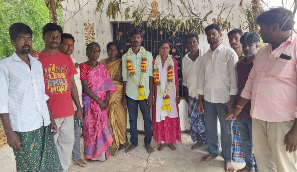 మాల మహానాడు ఆధ్వర్యంలో ప్రేమ జంటకు వివాహం జరిగింది పెద్ద కొండా మరి కి చెందిన సుధాకర్ చారాలకు చెందిన శ్రావణి లు గత కొన్నాళ్లుగా ప్రేమించుకుంటున్నారు ఇరువురు పెళ్లి చేసుకోవాలని నిశ్చయించుకున్నారు దీంతో రెండు కుటుంబాల వారు అడ్డు పడతారనే ఉద్దేశంతో స్థానిక పోలీస్ స్టేషను ఆశ్రయించారు ఇరువురు మేజర్లు కావడంతో మాల మహానాడు సమక్షంలో వివాహం జరిపించారు పోలీస్ స్టేషన్కు సమీపంలోని ఆంజనేయస్వామి ఆలయంలో ప్రేమ జంటను కలిపారు మాల మహానాడు నాయకులతోపాటు శ్రావణి తండ్రి శంకరప్ప హాజరయ్యారు ఈ కార్యక్రమంలో మాల మహానాడు మండల అధ్యక్షుడు కొత్తపల్లి మనీ నియోజకవర్గ ఇన్చార్జి కృపామని నాయకులు గుట్ట రెడ్డి శేఖర్ సురేష్ వాటర్ వాస్ మనీ పాల్గొన్నారు ఇరువురి కుటుంబ సభ్యులు పాల్గొన్నారు