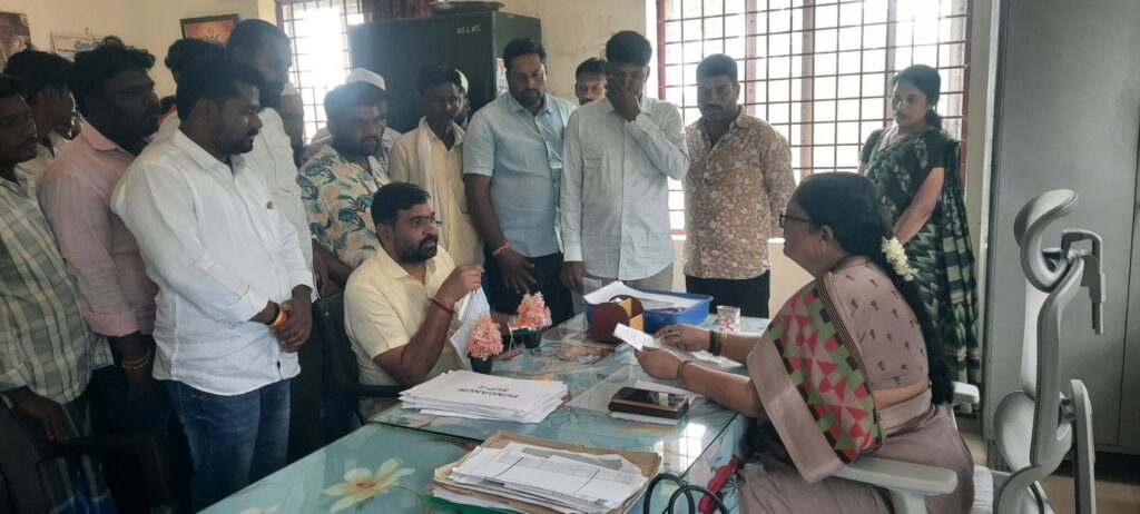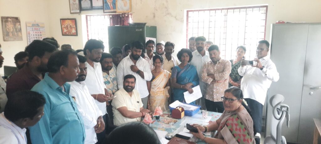 పుంగనూరు నియోజక వర్గం చౌడేపల్లి మండలం తెలుగుదేశం పార్టీ అధ్యక్షుడు గువ్వల రమేష్ రెడ్డి చౌడేపల్లి మండల తహసిల్దార్ కార్యాలయంలో ప్రజా సమస్యలపై ఆరా తీశారు. అర్జీదారులు ఎదుర్కొన్నటువంటి సమస్యలను పరిష్కారం దిశగా అడుగులు వెయ్యాలని, సూచించారు, అధికారులు ప్రజా సమస్యలపై దృష్టి సారించాలని తహసిల్దార్ పార్వతి, దృష్టికి తీసుకెళ్లారు . మండల తహసిల్దార్ భవనం చుట్టుపక్కల తిరుగుతున్న రైతులను వారి సమస్యల గురించి అడిగి తెలుసుకున్నారు. వారిని ఆప్యాయంగా పలకరిస్తూ వారి సమస్యలపై వెంటనే పరిష్కరించే దిశగా అడుగులు వేస్తానని వారికి హామీ ఇచ్చారు. అర్జీదారులు వారి సమస్య పరిష్కార దిశగా వెళ్లడంతో కొంతమంది హర్షం వ్యక్తం చేశారు. ఈ కార్యక్రమంలో అతని వెంట బోయకొండ సుబ్బు కుమార్ రెడ్డి ,ఆవుల పవన్, అర్జున్, ప్రభాకర్ ,చంగల్ రాయుడు, గిరి, తెలుగుదేశం పార్టీ నాయకులు కార్యకర్తలు, పాల్గొన్నారు.